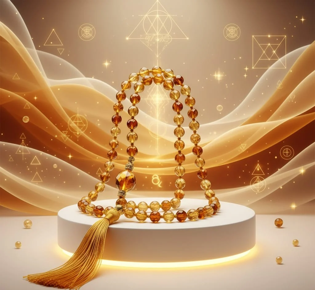 When used in meditation or chanting, a Citrine mala amplifies intention, attracts divine energy, and strengthens focus.