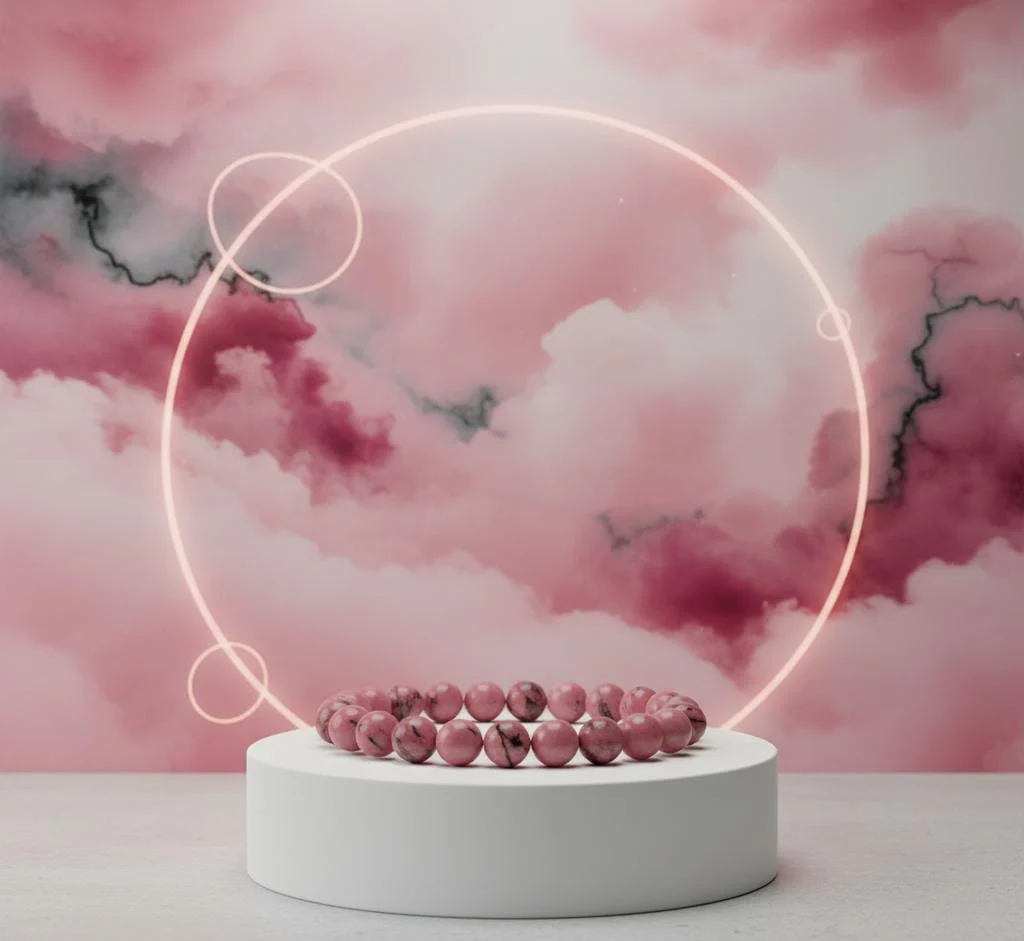 Rhodonite is a beautiful pink to rose-red crystal often streaked with black manganese veins. It’s known as the Stone of Compassion and Emotional Healing. This gemstone brings love, forgiveness, and emotional balance to the wearer.